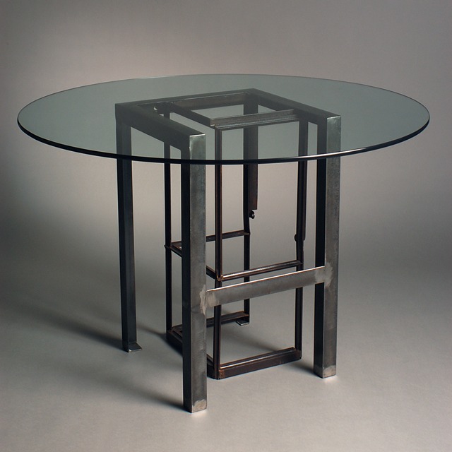 Materials: Reused steel window frame from a warehouse project, new steel and tempered glass top.